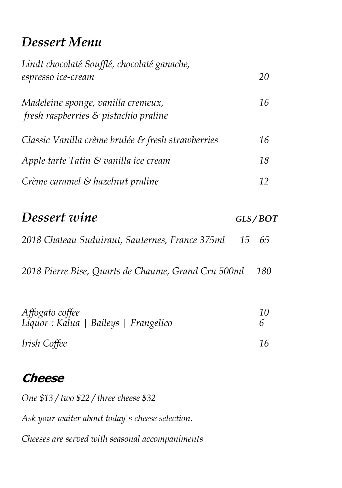 Boucher 2025 Dessert Menu